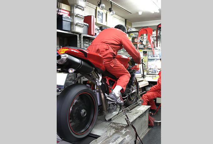 「水温を50度以上に上げた状態にし、車両を走らせて40km/h程度でクラッチを切る。この時のエンジンやチェーン、ホイールの音を憶えておきます。異常は音や微振動からわかるものも多いですから」