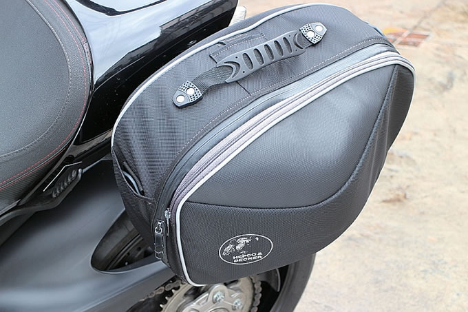 このディアベルのオーナーは、どこに行くときもディアベルで出かける。クルマも所有してはいるのだけれど『バイクのほうが楽しいから』と、よほど悪天候でもなければ、クルマを使うことはないと言う。そんなオーナーにとって、悩ましいのがディアベルの積載性の小ささで、日常のアシに使うには困りもの。そこで市販のキャリアやケースを装着してみたが、どうにもスタイルが気に入らない。「デザインに惚れて手に入れたディアベルですから、フォルムが崩れるのが許せなかったんです」
