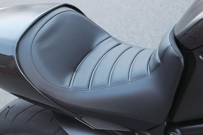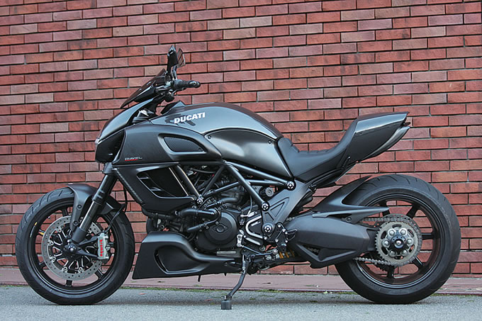 そう語るのは、黒さが増して精悍な部分が強調されたディアベルカーボンのオーナー。四輪の BMW 専門チューニングショップ、スタディのスタッフ。実は四輪業界では有名人である。二輪と四輪、素材は違うがカスタマイズのプロなのだ。