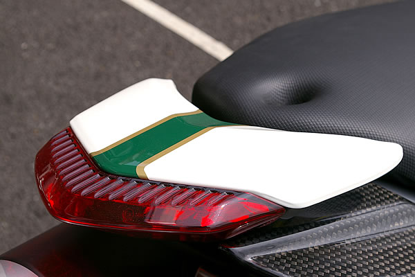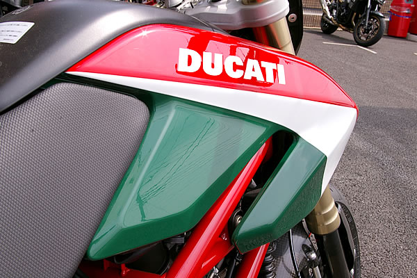 限定車でも人気を博したように、伝統のトリコローレカラーはドゥカティによく似合う。華やいだイメージが印象的だ。