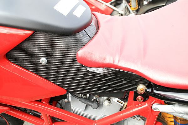 そんな現代のオートバイ事情の中、このハイパーモタードには「好きなことを、満足するまで、徹底的に、やる」という姿勢がはっきりと感じられる。スタイルがある。一見しただけではそれほどカスタムされているように思えないが、テールカウルをよく見ればこれはスーパーバイクのカウル(1098/1198系)だ。オーナーは「スリムなリアビューに憧れた」とその動機を簡潔に語るが、それ以上の理由はいらないだろう。憧れをかたちにする。きっかけがシンプルだからこそ体現されるものもわかりやすく、それゆえに観る者を惹きつける。
