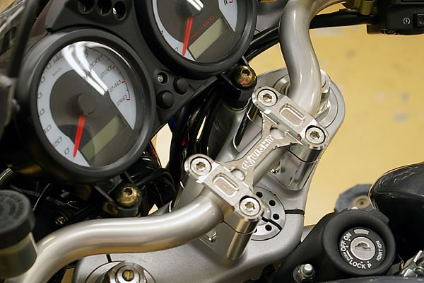 ハンドルまわりはdeLIGHT製のパーツを使ってポジションを変更している。ハンドルライザーの高い質感も魅力。