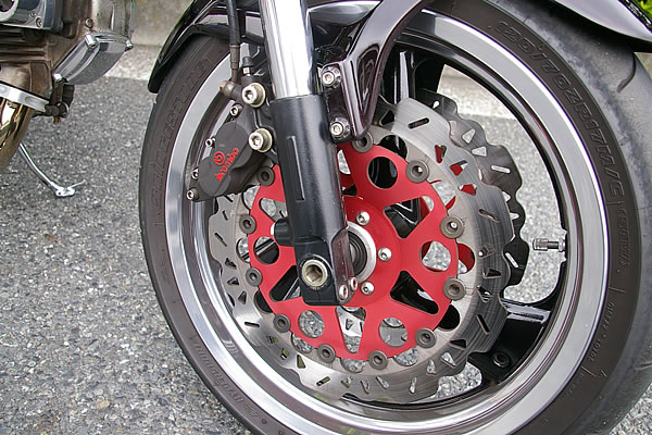 フロントブレーキはウェーブディスクに、ブレンボ製レーシングキャリパーを装着。強力な制動力を実現している。