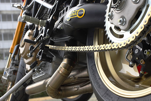 SPPED製フルチタンマフラーツインタイプ(294,000円)は前後バンクを等長にしているのでスムーズな吹け上がりを実現している。