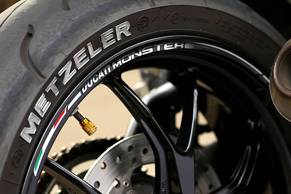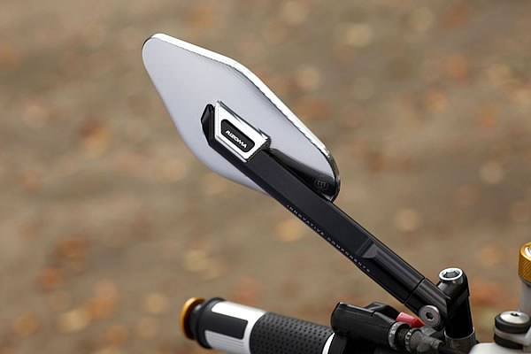 ブラックアルマイトの質感とバフ仕上げのコントラストがおもしろいRIZOMA製ミラー。同社製品は削り出しの精度も高く、デザインも個性的だ。モンスター以外のモデルで使用するのもアリだ。