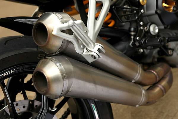 車両の雰囲気にピッタリなのがイタリアFRESCO製のハンドメイド・フルエキゾースト。本人曰く、何よりもサウンドが気に入っているとのこと。材質はチタンで、溶接ビードも非常に美しい。