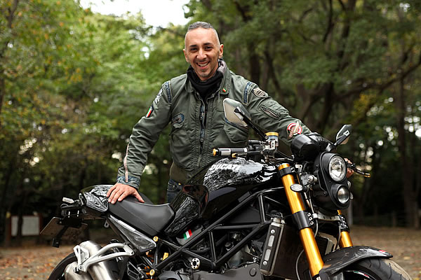 意表をつく縦型二灯式ヘッドライトやモンスターではあまり見かけない2本出しメガフォンサイレンサーと、ひとめで「かなりヤッてる雰囲気」なS4RS。この異様なほどに迫力のあるモンスターに乗るのは、イタリア人のクランティさん。4年ほど前に来日し、都内でヨガのインストラクターとして活躍する人物だ。そう聞けば「さすがイタリアン!」と、そのカスタムのブッ飛び具合もなんとなく理解できそうだが、そもそもどのようなスタイルを目指して車両に手を加えたのだろうか。