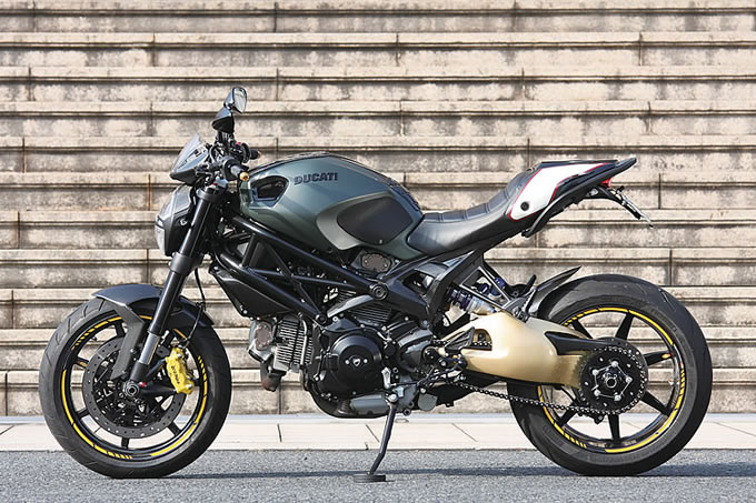 仕事として四輪車に関わってきたオーナーだが、プライベートではバイクが大好き。中でもモンスターはお気に入りで、今までモンスター 696 やモンスター 796 を所有してきたとのこと。現在は、モンスター 1100 EVO がベースになったモンスターディーゼルを選んでいる。