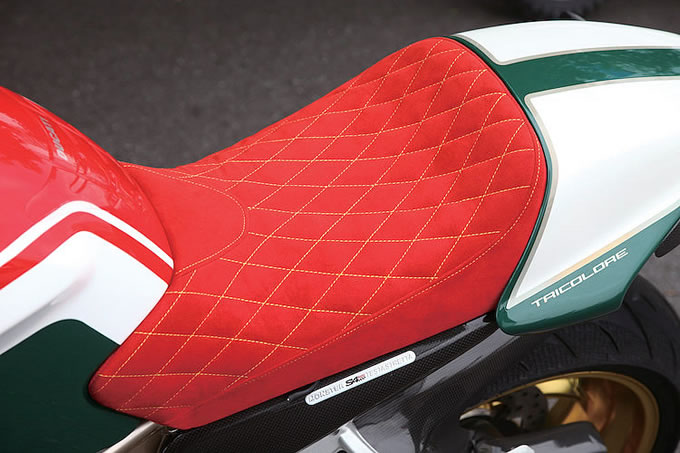 イタリアを象徴するトリコローレと二色のゴールドは、ストックのスタイリングやカラーリングを生かしつつ、スペシャルなパーツ群を組み合わせた、気品ある高性能の象徴だ。1200 の登場で、すでに2世代前となってしまった S4RS だが、その魅力はまったく色褪せることなく輝いている。