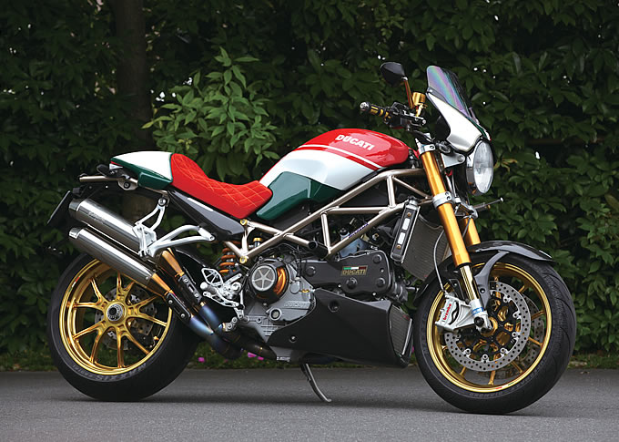2008年、国内限定 30 台で輸入された貴重なモンスター、それが S4RS トリコローレだ。130ps を発生する水冷テスタストレッタエンジンを搭載、サスペンションはオーリンズ製、ホイールはマルケジーニ製を装備するフラッグシップモンスターである。