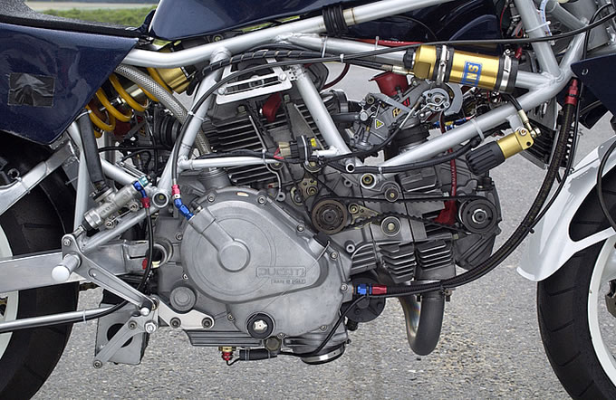 ベースモデルが1985年式のI型のため、クラッチは湿式。しかし機械式のGPM製乾式クラッチセットがあるので交換する予定。シリンダーはノーマルだが、ピストンをオメガ製、カムをNCR7番、ヘッドは III 型改のツインプラグ仕様としている。
