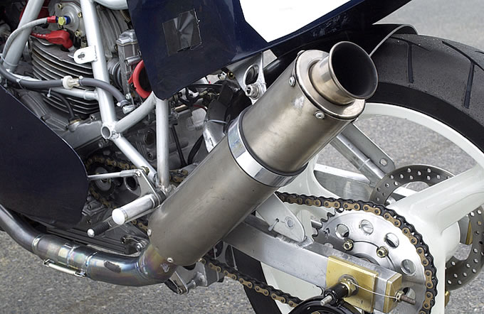 マフラーはメーカー不明のチタン製だが、今後ベルリッキのようなショートタイプに変更する可能性もある。
