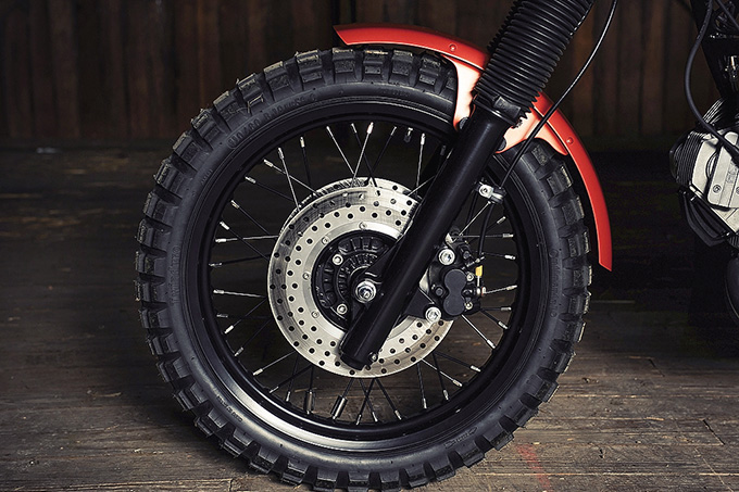 オリジナルをオマージュしたタンク、スクランブラーに欠かせないアップマフラー、そしてダートを含む旅が楽しめるようにとあつらえられた実用的なキャリア等々。