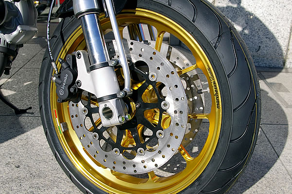 ホイールはゴールドのマルケジーニ。サイズは純正同様で、タイヤが変更されている。