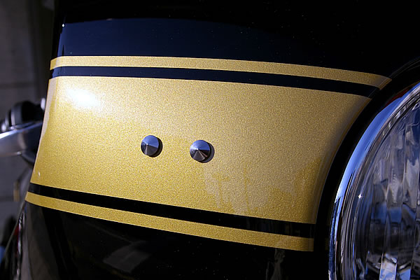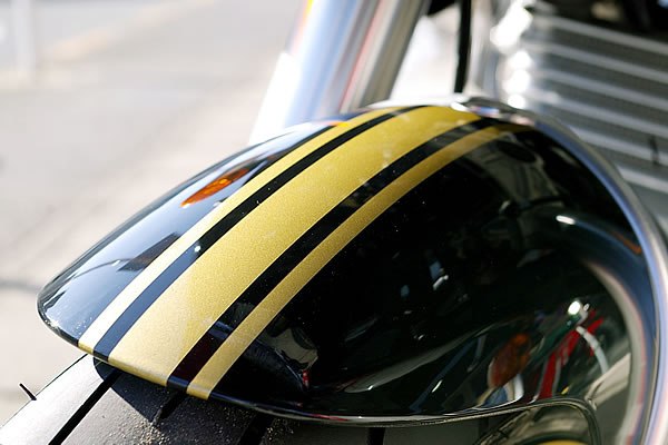 フェンダーにももちろんゴールドのストライプが入る。塗装のクオリティも抜群だ。