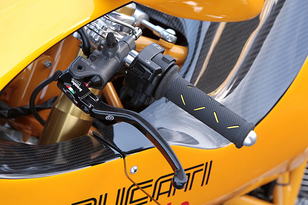 油圧式クラッチのレバー側はブレンボ製ラジアルポンプ(16RCS)を装着し、操作性を高めている。足回りの強化とともにこうした操作系も合わせて性能を上げることで、その効果は相乗的に上がっていくのだ。