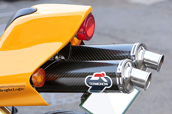 2000年に発売されたMH900eもそんな一台だ。そこでオーナーがとった方策は、足回りを最新装備で仕立て直すことだった。前後ともにオーリンズ製サスペンションを入れ、ホイールをマルケジーニ製の軽量なものに変更。さらにMH900eのスタイリングを崩すことなくアレンジを加え、色あせないスタイリングをさらに鮮明なものとした。