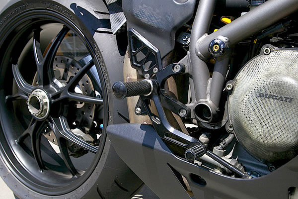 ライダーの体格にポジションを合わせるために、アエラ製のバックステップに変更。ルックスもさらにレーシーな雰囲気へと進化した。