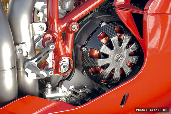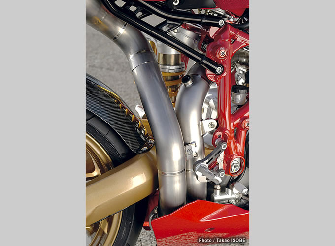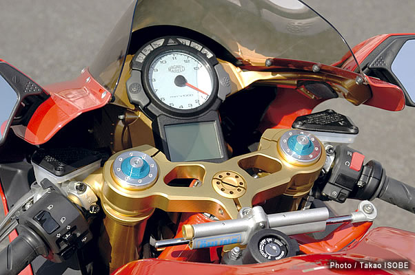 ここに紹介するのは、999Sをベースに独自の方向性でカスタマイズを進めたマシンである。製作したモトコルセでは、あえてファクトリーバイクのイメージに固執することなくマシン開発を進めている。それは、マシンのディテイルからも理解することができる。
