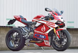 レーサーレプリカであるパニガーレであれば深化、つまりレーシングマシンのカラーリングの再現だ。上の大きな画像の車両(ベースは 1199 パニガーレR)は、チーム SBK ドゥカティ・アルスターから世界スーパーバイク選手権に参戦しているカルロス・チェカのレプリカモデル。色の塗り分け方はもちろん、スポンサーロゴも大きなものから小さなものまでが再現されており、そのまとまりの良さはさすがだ。