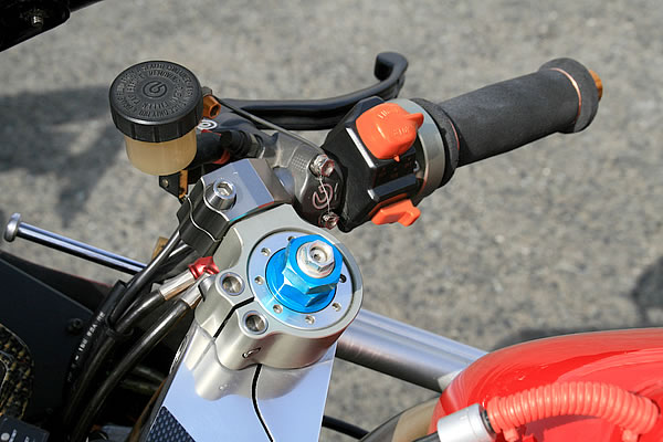 車体の軽量化、エンジンチューンナップをしたならブレーキのカスタマイズも怠れない。ブレンボ製ラジアルポンプのマスターに換装された制動力が、走りの性能を後押しする。