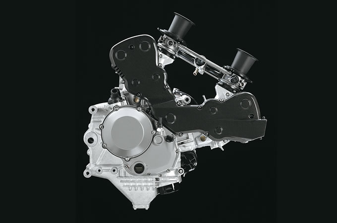 この驚くべきハイスペックの陰には、明らかにデスモセディチの存在がある。ドゥカティはMotoGPへの参戦によりコストや製造工程に制限の無いマシン作りが可能になり、そこで培われた最高レベルのノウハウが、エボルツィオーネにもフィードバックされているのだ。これを端的に示しているのがシリンダーヘッド。気筒数こそ違うが、デスモセディチと外観が酷似しており、その深い関連性が窺える。量産車と思えないほど細部にまで手が加えられた、ドゥカティLツイン史上最もパワフルなエンジンと言える。