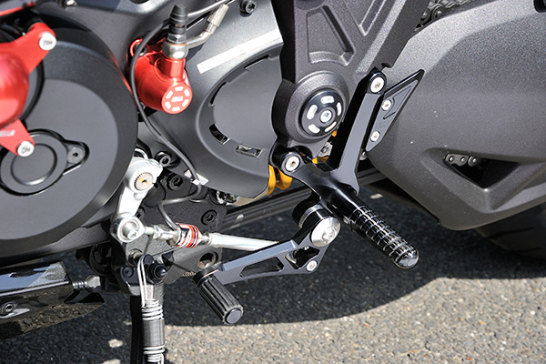 ステップの位置と形状、マシニング加工による凹凸の感触が絶妙で、ステップワークをしたときにキッチリ踏ん張れるのがイイ! クラッチが軽くてつながりも良いので、より繊細なシフトワークが可能だ。