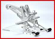 『ライディングステップキット』ノーマルから 30mm アップ/20mm 手前の位置を基準に6ポジションを設定、逆チェンジやクイックシフターにも対応なステップキット。ステンレスカラーやベアリングで支持される3ピース構造のペダルが、カッチリとした剛性感とスムーズなシフトタッチを実現。