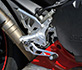現在は時代のニーズに合わせてストリート用パーツをメインに開発していますが、考え方としては機能最優先であるレース用パーツで培ったノウハウを生かしつつ、ストリート用としての扱いやすさはもちろん、所有欲を満たすと造形美とフィニッシュなどを盛り込んで製品化しています。ライディングステップでいえば、ドゥカティ、BMW、トライアンフ、MVアグスタ用など全 68 種類。特に注力しているドゥカティ用だけで 23 種類のアイテムを用意しています。総数では 500 アイテム程度になるでしょうか。