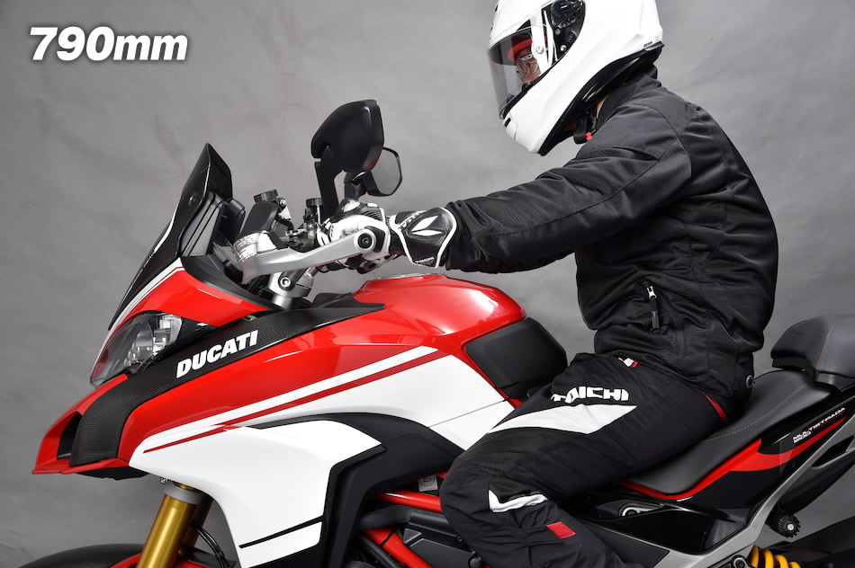 ドゥカティのマシンの中でも、モンスターやムルティストラーダといった、アップハンドルタイプのマシンは、スタンダードのハンドルに違和感を覚えるライダーは少なくない。その大きな理由は広めのハンドル幅にある。大柄で手足の長い欧米人向けのハンドルは、どうしても日本人の体格にはそぐわない。
