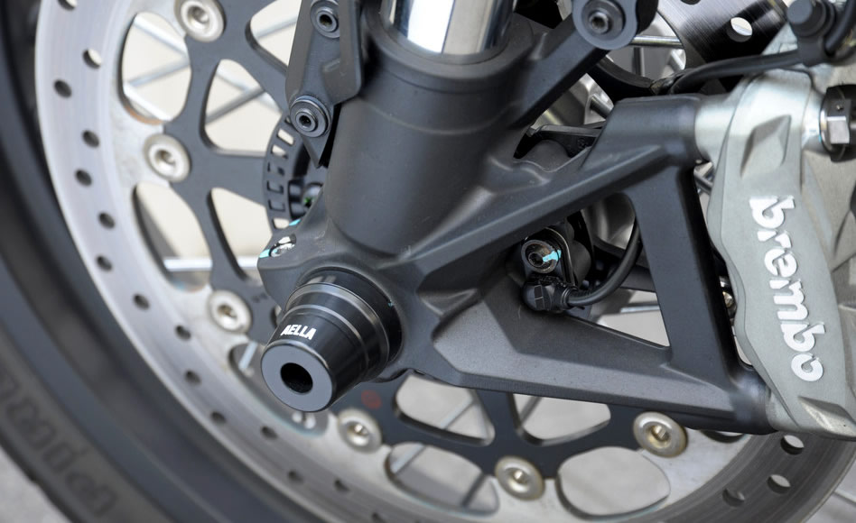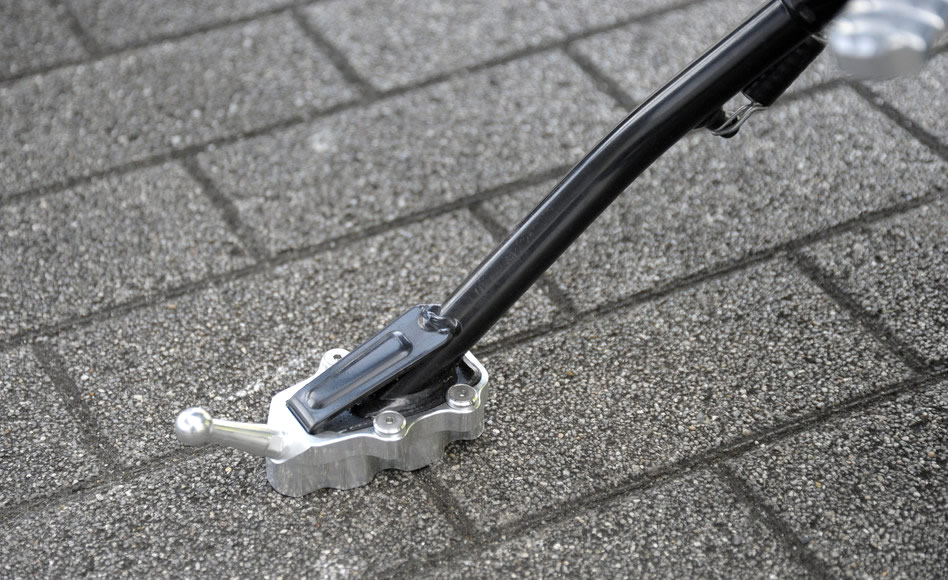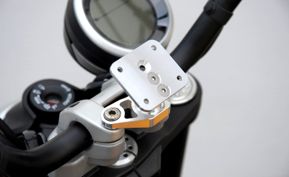 糟野 :スクランブラーは、街乗り用のトラディショナルバイクということから、ライディングポジションに関するパーツ以外にも、転倒時に車体ダメージを最小限に食い止めるスライダーや、便利グッズでもあるナビゲーションマウントステーなどもラインナップしました。これはユーザーからのリクエストに答えてリリースしたパーツでもあります。そして最新の400には、サイドスタンドに装着させるアルミ削り出しのサイドスタンドエンドを発売します。あまりに大きく傾いてしまう車体を緩和させる重要なパーツですね。