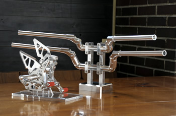 アエラ製のスペシャルパーツは、その美しい仕上げと共に追求されている優れた操作性が高い評価を得ている。ライディングポジションを変更するパーツは、日本人ライダーが使うことを前提として開発。多くのハイパフォーマンスマシンにフィットするパーツを、リリースし続けているのだ。