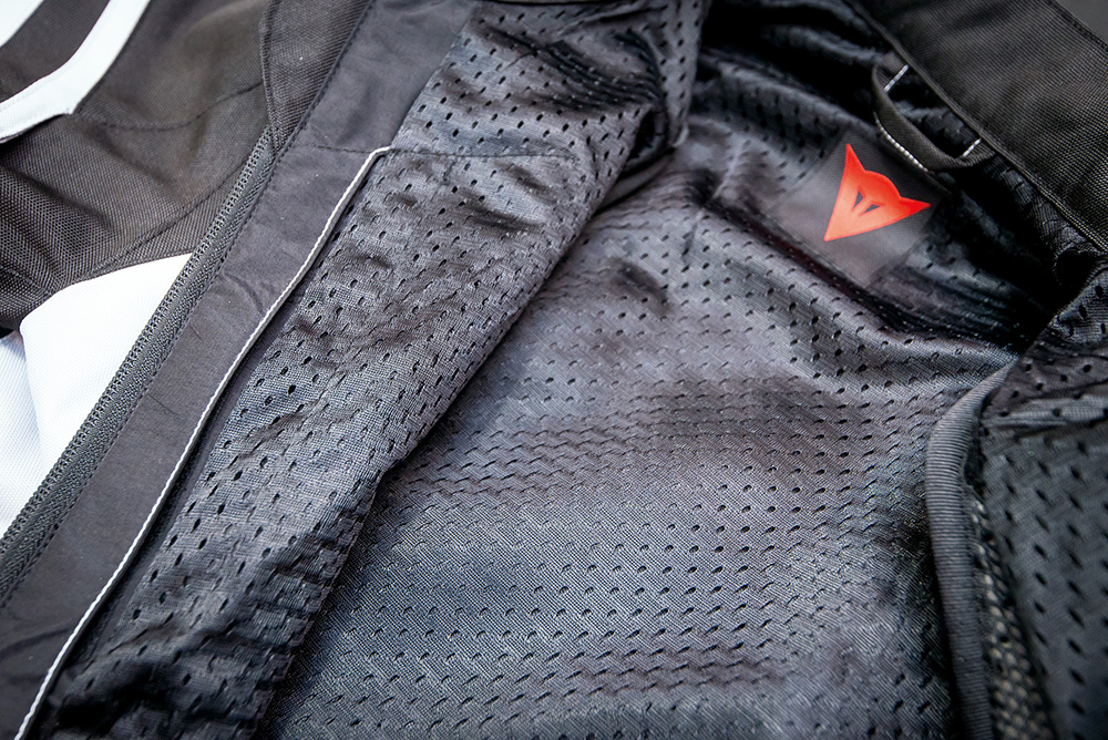 ここで紹介するのはイタリアのブランド、ダイネーゼの最新サマージャケットだ。生地の大半にメッシュ素材を使用したジャケットは軽くて通気性に優れるだけでなく、肩と肘にプロテクターを標準装備していて安全性にも抜かりはない。また、モデルによっては胸部や脊椎へのプロテクター追加が可能なのもダイネーゼの安全性に対するこだわりのひとつ。さらに、ダイネーゼではそうしたオプションのプロテクターにも通気性も兼ね備えた独自構造のものを用意しているので、組み合わせ次第ではさらに快適なサマーウエアにカスタムすることも可能なのだ。
