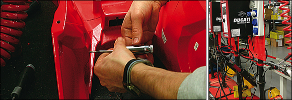 D16RRの車体生産ラインは、丁寧な組み立てに気を遣い、最高峰のモーターサイクルに相応しい仕上がりになるよう配慮しています。最高のパフォーマンスを生み出すには、優秀な設計にハイクオリティパーツも必需品ですが、我々はそこに「情熱の手」を付け加えることで、ドゥカティらしい味付けを濃厚にしているのです。