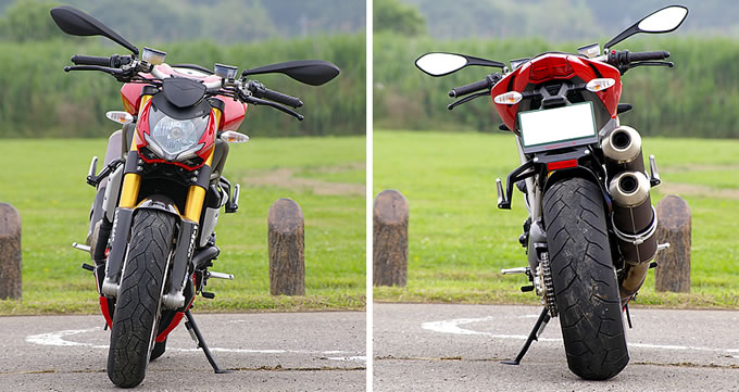 それは足回りのセッティングやブレーキにも表れている。いずれもモンスターシリーズなどにくらべてハードな設定ではあるものの、ストリートモデルとして必要になるコントロール性の良さは忘れていない。今回はサスペンション設定の変更を行わずに試乗したが特に不快感はなく、むしろ少し硬めの足回りが乗りこなしたくなる気持ちに火をつけてくれる。これにスロットルを開けたくなるエンジンが載っているのだから、面白くないわけが無いのだ。サーキットなどのコンマ1秒を削る走りを求めるなら、物足りない部分があるのかもしれない。しかし、自分の技量と相談しながら「目の前の道をどれだけ楽しく走れるか」という遊び方をするなら、ストリートファイターは飛び切り面白い相棒だ。激しいだけでなくクレバーな一面も備えたファイターは、乗るほどにハマってしまう危険な魅力に満ちている。