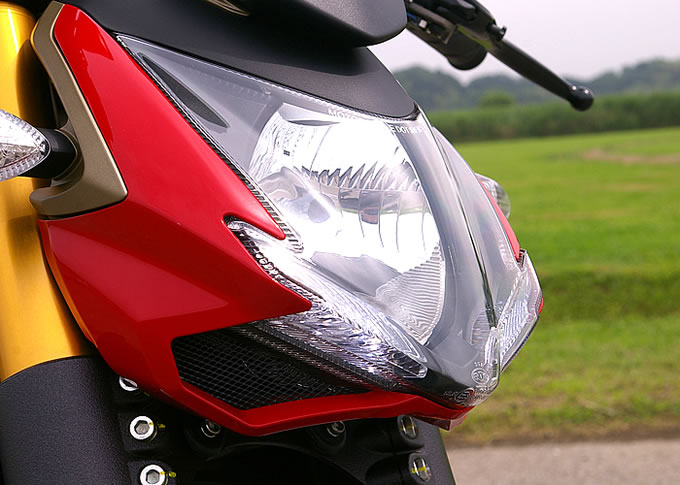 個性的な表情を作り出している単眼ヘッドライト。下部のLEDポジションランプは、1098のヘッドライトをイメージしたデザインとなっている。
