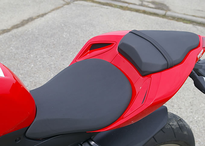 シート高は840mmと足つき性は一般的なスーパースポーツ並み。タンデムシートは見た目よりも座りやすく、成人男性二人でも問題無い。