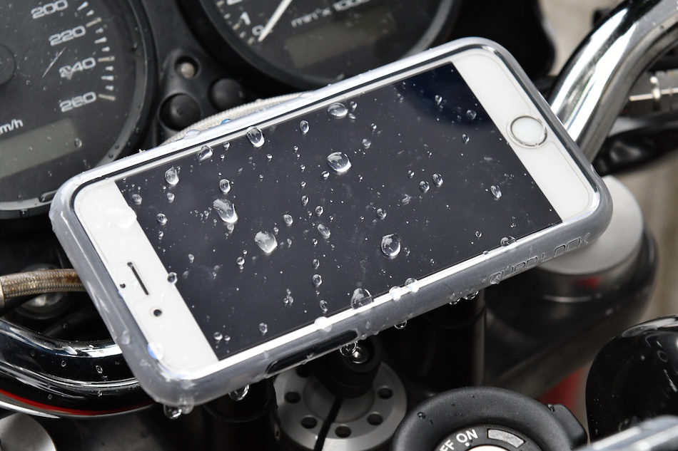 今回はバーハンドル用のモーターサイクルマウントを振動の多い空冷Lツイン車に装着して100kmほど走行したが、スマホの安定感は素晴らしいのひとこと。ホルダーと専用スマホケースを使用する独自構造のため、デザインも至極シンプルで、スマホを外した状態でもハンドル周りはスッキリ。大げさなスマホホルダーはちょっと……という人にはピッタリだ。また、スクーター用のミラーホルダーもテストしたが、こちらもホールド性は抜群。いずれもスマホを縦・横どちらでも固定可能で、しかもホルダー側で固定角度を10度ずつ回転させられるので、周囲の干渉物に合わせて固定位置を調整できるのも大きなポイント。これからスマホホルダーを購入するのなら、ぜひ候補に入れておきたい一品だ。