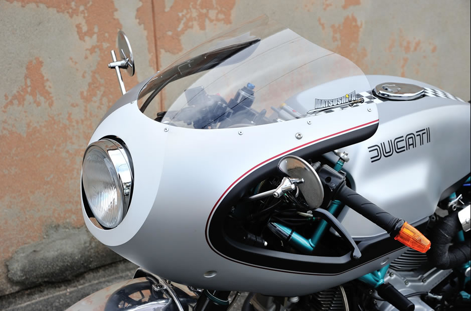 はじめはシルバーフレークを使った純正イメージを思い描いていたという谷川さんだが、お店にあった桑山さんの愛車 848 を見て衝撃を受けた。彼の 848 はマットカラーなのだが、ベースとなるのは純正と同じ色。「マットを載せると雰囲気が大きく変わるのだな」と驚くとともに、ポールスマートにも同じことをしてみたいと強く思った。