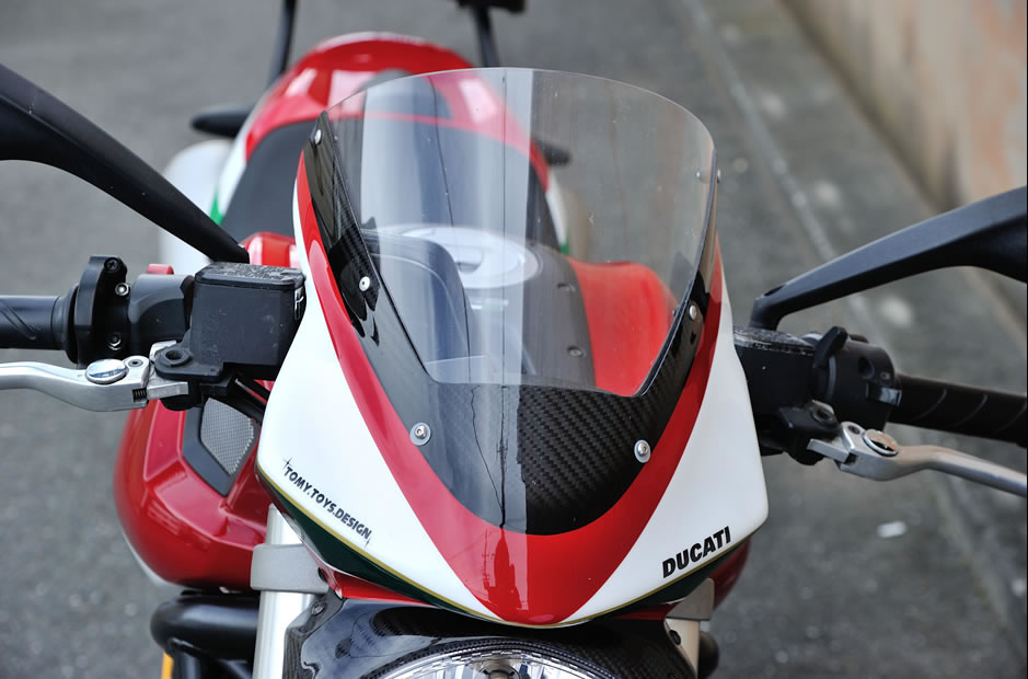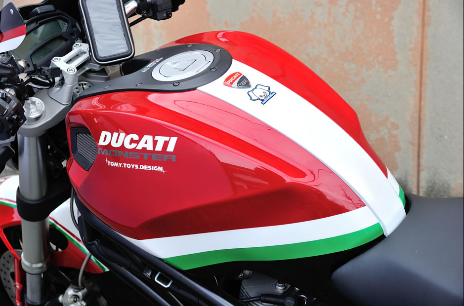 トミートイズデザインでは、これまで数多くのドゥカティペイントを手がけてきた。ここではそんな数ある作品のなかから数点をピックアップ。その技術力とセンスの高さを堪能していただきたい。また、当然ながら同店ではヘルメットなどのペイントも行っている。バイクに乗る際には必ず身に付けるヘルメットだけに、オリジナルペイントでより愛着を感じたいという人は多いはず。そして、トミートイズデザインの真骨頂ともいうべきが、純正リペアペイント。転倒などで傷ついたカウルやフューエルタンクなど、ほとんどの素材に対応し、もとのように修復とペイントを行ってくれる。まさにペイントを極めたスペシャルショップなのである。