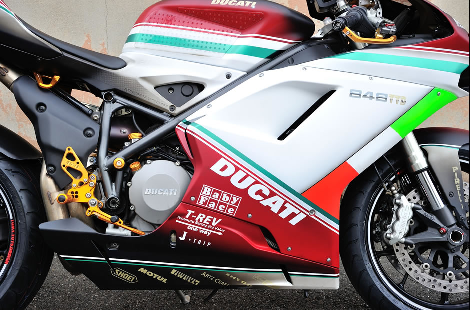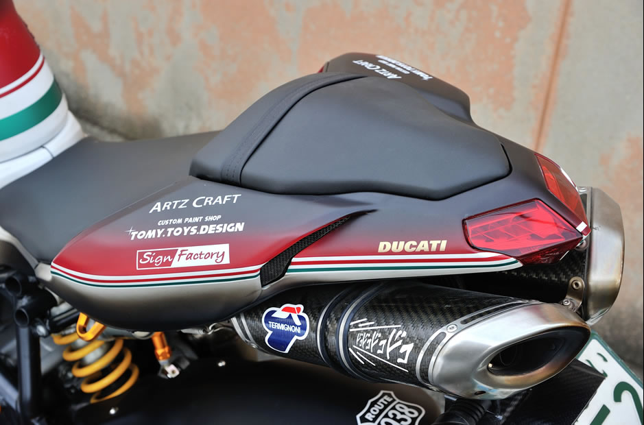 自身が 848 乗りということもあって、ドゥカティには並々ならぬ思い入れがある。「カスタムペイントは敷居が高いと思われますが、決してそんなことはない。ネイキッドモデルが8万円~、フルカウルの場合は 15万円~として、予算から相談させてもらうので、ぜひ一度、遊びに来てください」