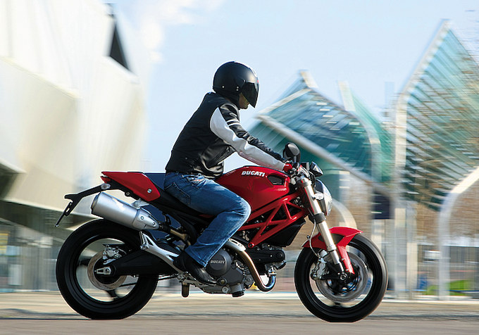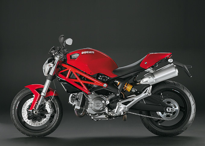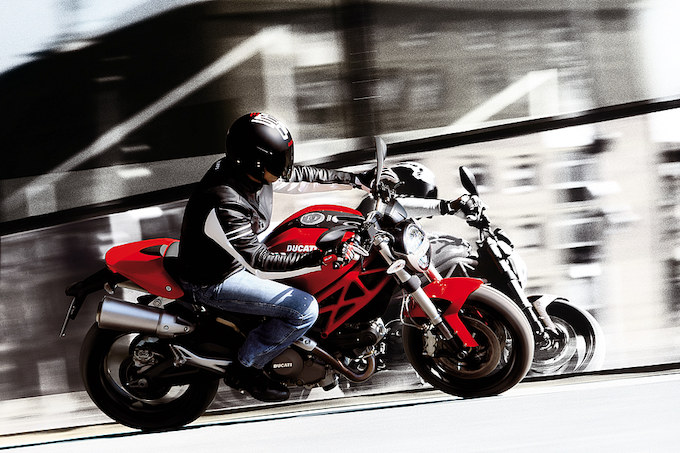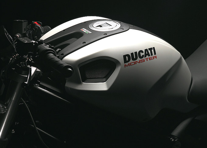 2007年のミラノショーで発表され、2008年6月に上陸を果したモンスター696。次世代を見据えたその車体構成もさることながら、専用スクリーンなどを標準装備して日本に先行輸入された696+(プラス)が104万円、その後に導入されたスタンダードが99万8000円という魅力的なプライスタグをつけられたことからも、このモデルが非常に戦略的なモデルであることがうかがえる。モンスターと言えば、長らくドゥカティユーザーの裾野を広げるために大きな役割を果してきた人気シリーズだ。それが前面刷新され、その第一弾としてデビューするのがこのモンスター696となれば、期待が高まるのは当然のことだったと言えるが、ニューモンスターは約9%もの出力向上を果したエンジンや、パフォーマンス向上に合わせて大幅に強化された新型トレリスフレームなどを引っさげ、我々の想像を遥かに超える仕上がりの1台となってデビューを果したのである。