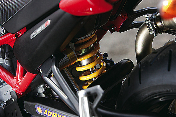 - ザックス製フルアジャスタブルモノショック、アルミニウム製片持ち式スイングアーム(オーリンズ製フルアジャスタブルモノショック、アルミニウム製片持ち式スイングアーム)