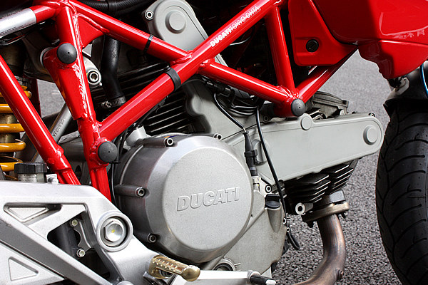 エンジンは日本未発売だったモンスター620の618cc空冷2バルブデスモ。湿式クラッチでAPTC(アドラー・パワー・トルク・クラッチ)を標準装備。