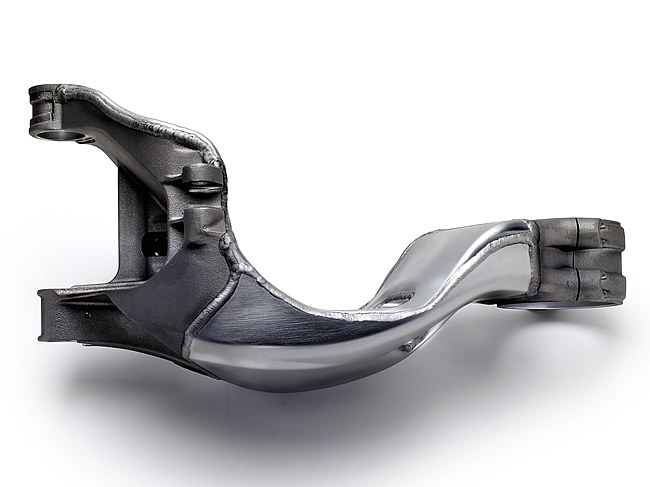 鍛え上げられた筋肉を連想させる逞しい片持ちリアスイングアーム。鍛造品と鋳造品のコンポジット。
