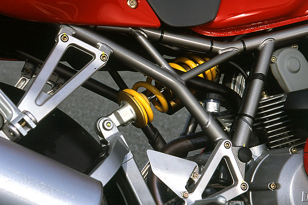 兄弟モデルであるSS900とSS750だが、装備については細々と差異がある。エンジン排気量はもちろんだが、スイングアームの材質がスチールであること、フロントフォークにアジャスト機構が存在しないことのほか、年式によってはホイール形状も異なっている。車種バリエーションについては同様で、ハーフカウルとフルカウルを設定。カラーリングもイエロー、レッドといったSSシリーズの基本色が共通で採用されている。ちなみに、SS900との価格差はおおよそ30万円ほどだった。2001年の価格表を見直してみると、SS750より廉価なモデルはモンスター400のみとなるため、買い得感はあったはずだ。