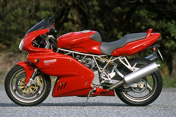 ドゥカティのスーパースポーツシリーズとしてはSS900がメジャーだが、同系機種としてSS750の存在も忘れてはならない。この2台は本質的には同じフィーリングを持ってはいるが、そこには排気量の大小によるパワーの差だけにとどまらない違いが存在している。パワー、トルクともにSS900に及ばないSS750は、スロットルの操作で車体を簡単に動かせない分、ライダーが身体を使って積極的に車両をコントロールしなくてはならない。しかし、硬めにセッティングされた足回りに仕事をさせ線化威力を引き出すためには、ある程度のコーナーリングスピードが必要になる。つまり、速く走れなければSS750が持つ本来の性能を味わうことが難しいのだ。