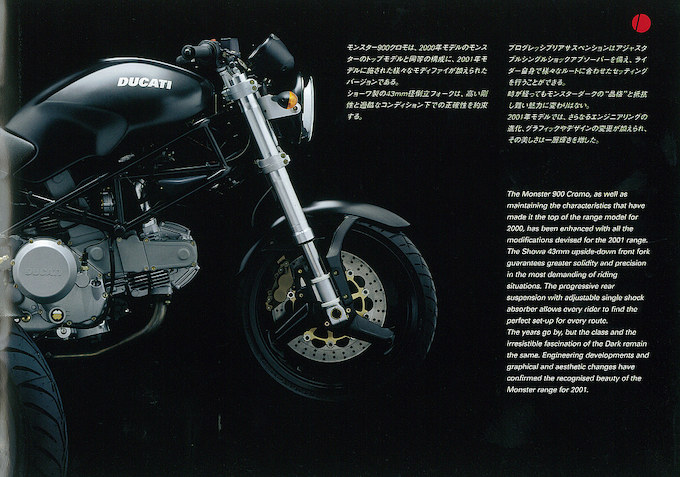 豪華版のモンスター900S との違いは、フロントフォークの調整機構やビキニカウルがないことなどでした。