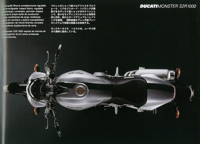 モンスターS2R1000がデビューする以前、その前身であるモンスター1000S は、すでに主流になっていた水冷のモンスターと、新カテゴリである ムルティストラーダ1000 の人気に押されて、新車販売は伸び悩みます。しかしながら空冷モンスターファンは確実に存在しており、彼らは円熟の域に達したそのエンジンと当時最新だった片持ちスイングアームを組み合わせたニューモデルの登場を待ち望んでいました。そのため、モンスターS2R1000は発売とともにプチヒットモデルとなったのです。ただし、当時も 2012年現在も、やはり人気の中心は水冷モデルなので、空冷の扱いやすさとスタイルをあわせ持ったモンスターS2R1000の中古車は、不人気ゆえのお買い得価格で販売されています。