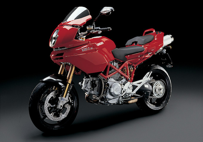 2013年モデルのムルティストラーダシリーズは、排気量1198ccの水冷エンジン+湿式クラッチを搭載していますが、シリーズ誕生となった 2003年発売の ムルティストラーダ1000 では992ccの空冷エンジンに乾式クラッチを組み合わせていました。その後、2005年に上位モデルのムルティストラーダ1000S を追加し、2007年には1078ccの空冷エンジン+湿式クラッチを備えた ムルティストラーダ1100 & 1100S に発展。そして 2010年に水冷の現行モデルへとフルチェンジを果たすのです。